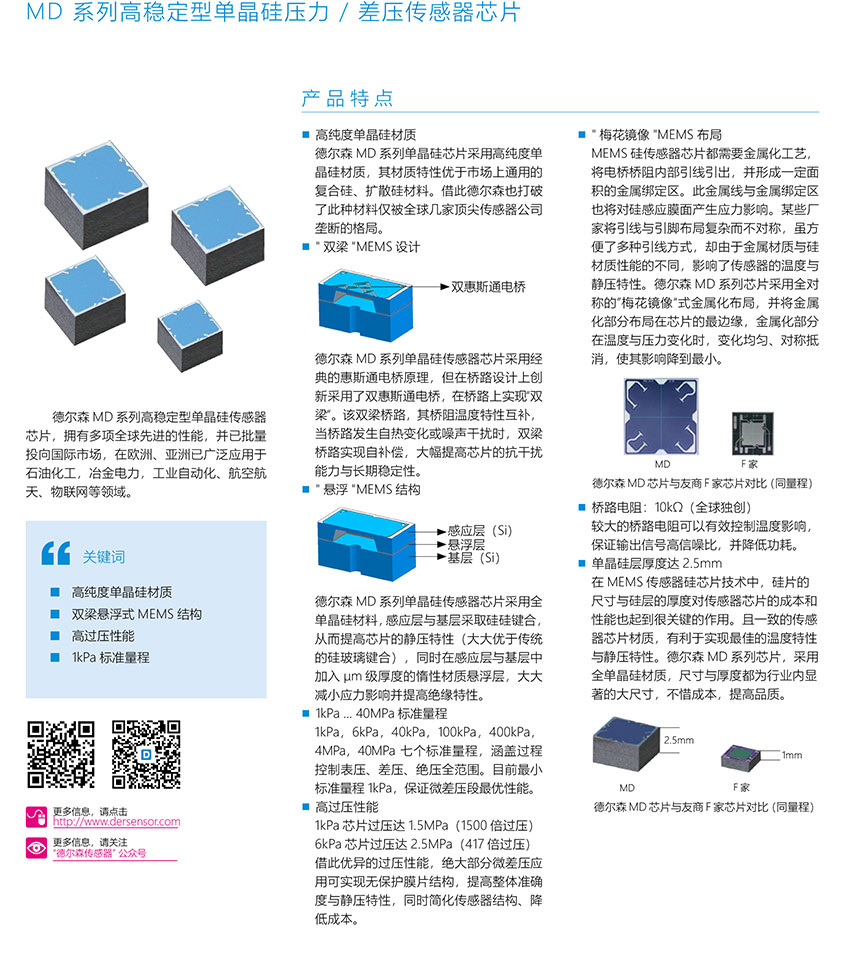 產(chǎn)品名稱: MD 系列單晶硅壓力 / 差壓傳感器芯片