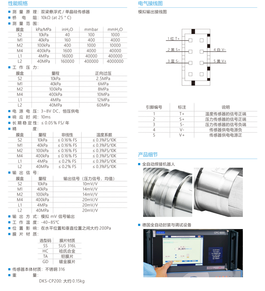 產(chǎn)品名稱: DKS-CP200 系列精巧型單晶硅壓力傳感器