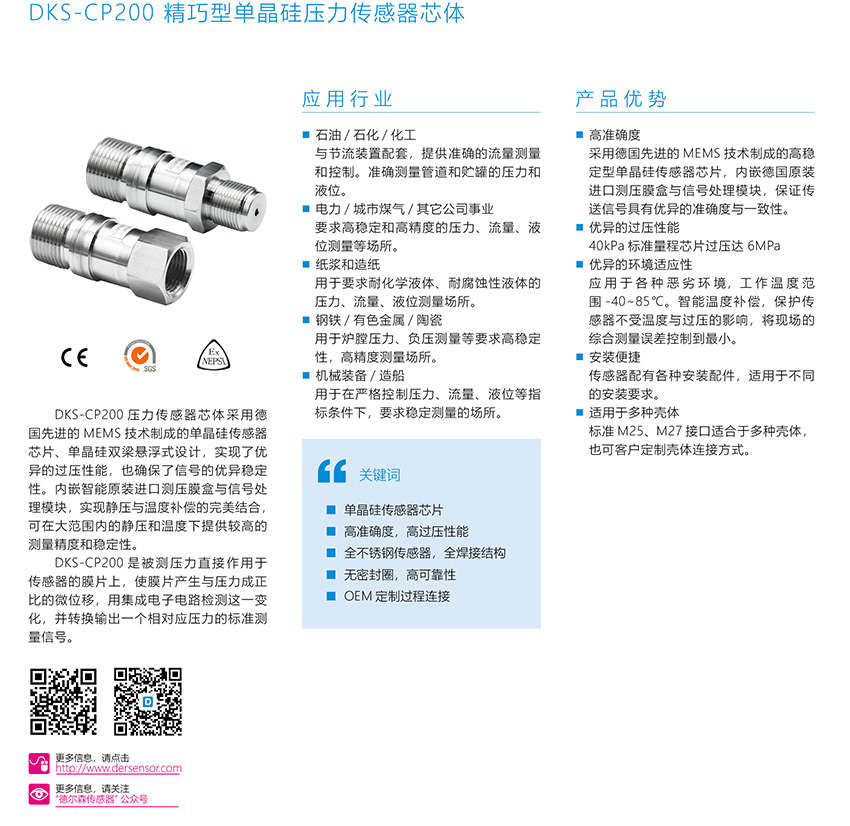 簡述: DKS-CP200 系列精巧型單晶硅壓力傳感器