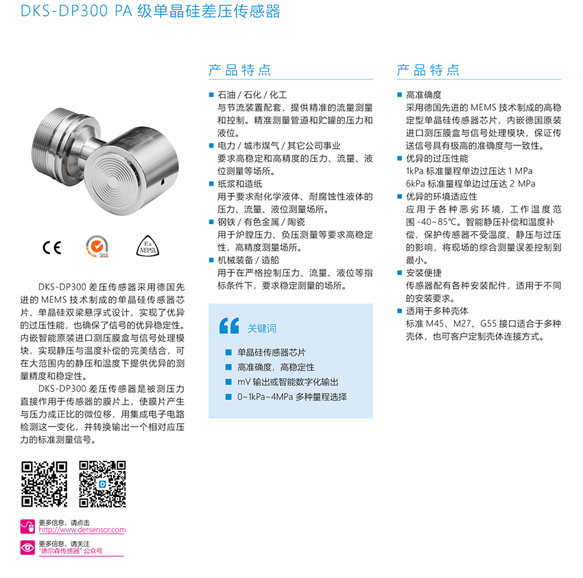 產(chǎn)品名稱: DKS-DP300 系列單晶硅差壓傳感器