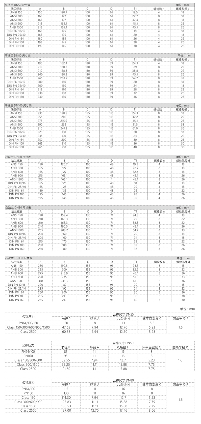 常用法蘭公稱尺寸表